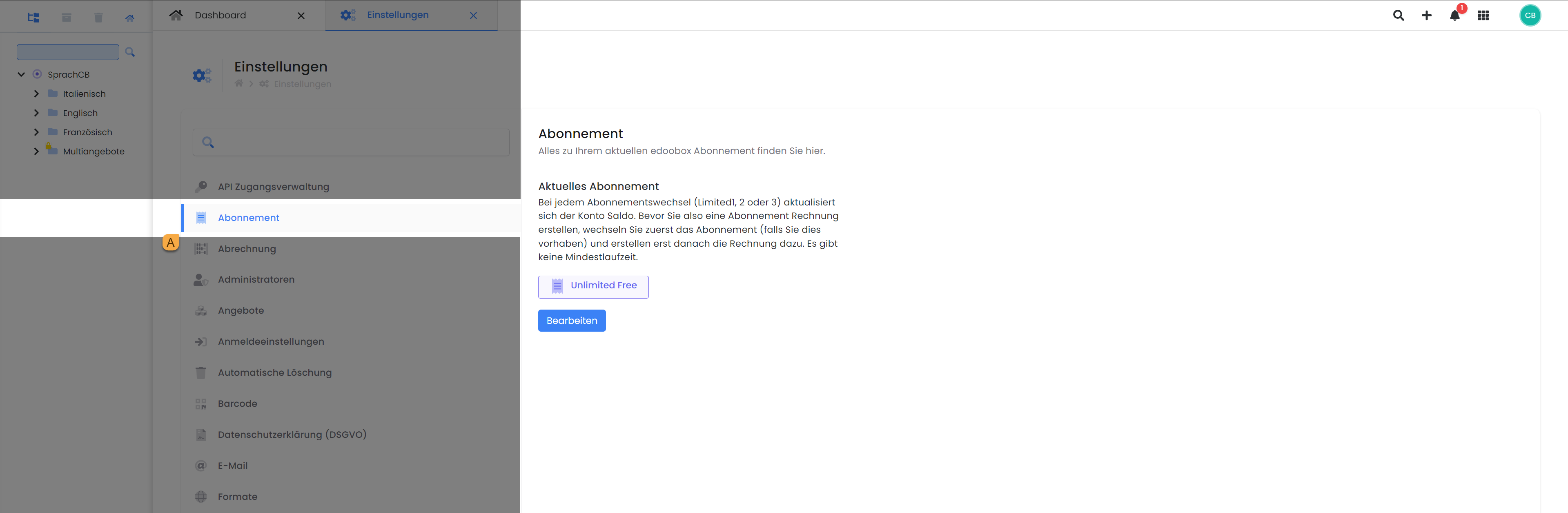 In den edoobox Einstellungen finden Sie Einzelheiten zur Abrechnung zwischen Ihnen und edoobox. Zudem finden Sie unter Abonnement die Übersicht Ihres aktuellen Abonnements und können dieses hier auch zu jederzeit wechseln. Unter Datenschutzerklärung (DSGVO) finden Sie die Möglichkeit diese online zu unterzeichnen.