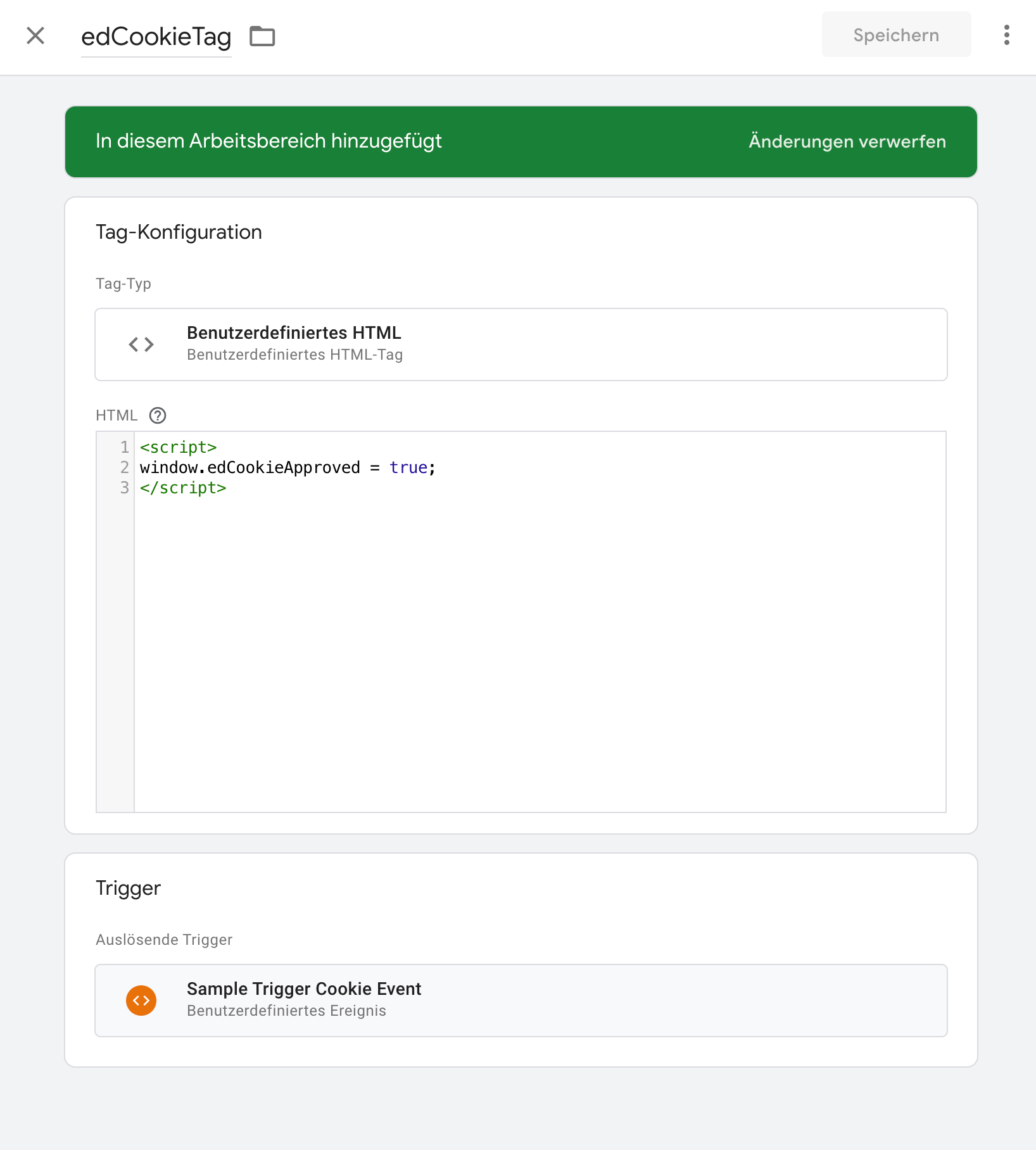 Tag-Konfiguration: neuen Tag edCookieTag erstellen