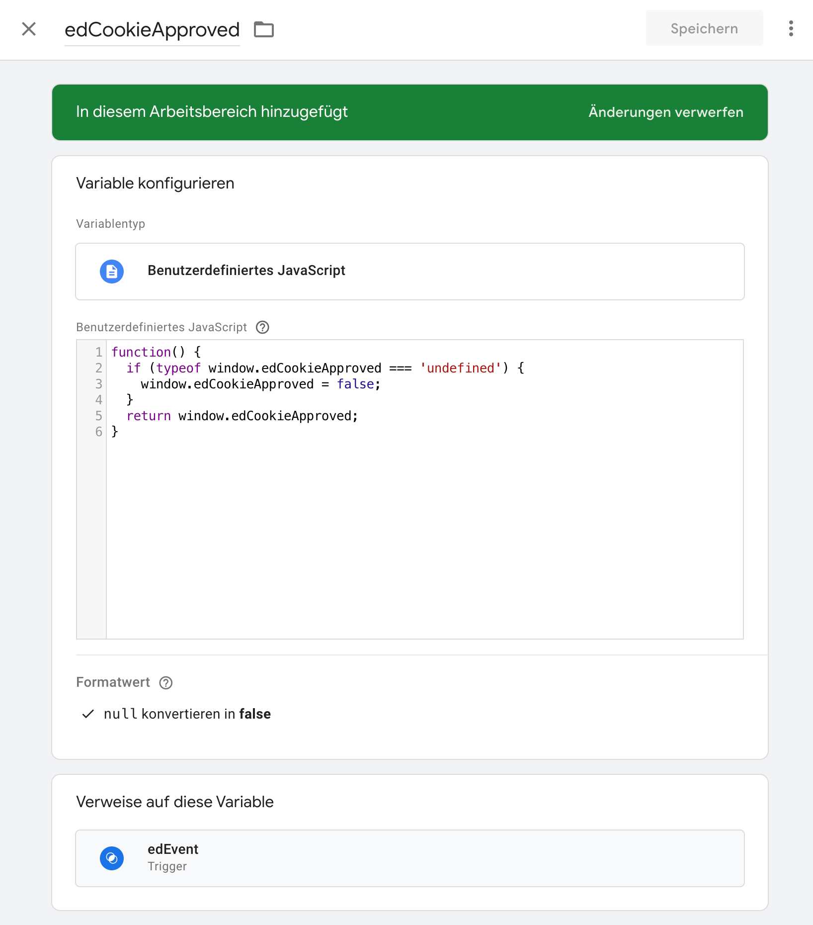 Neue Variable edCookieApproved erstellen