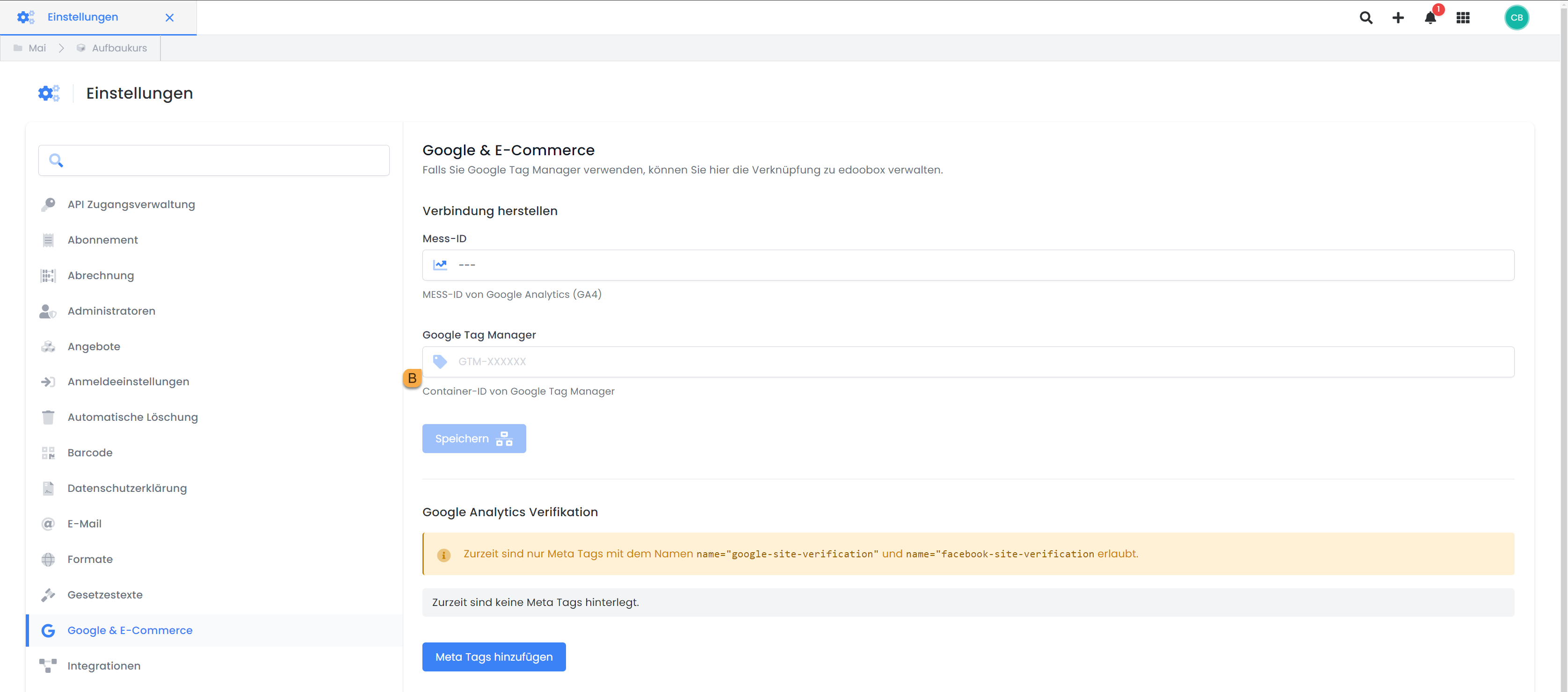 Fügen Sie die Google Analytics Mess-ID auf edoobox ein