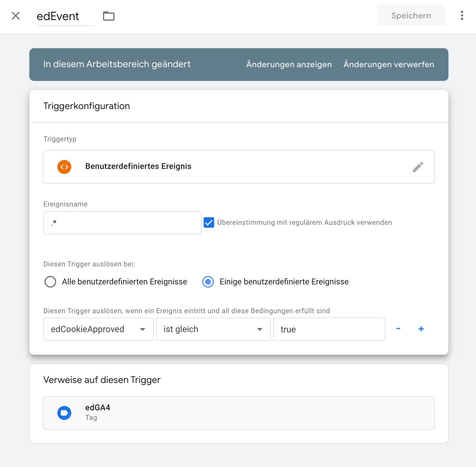 Erweitern Sie den bestehenden Trigger edEvent so, dass er nur ausgelöst wird, wenn die Variable auf true gesetzt ist:
