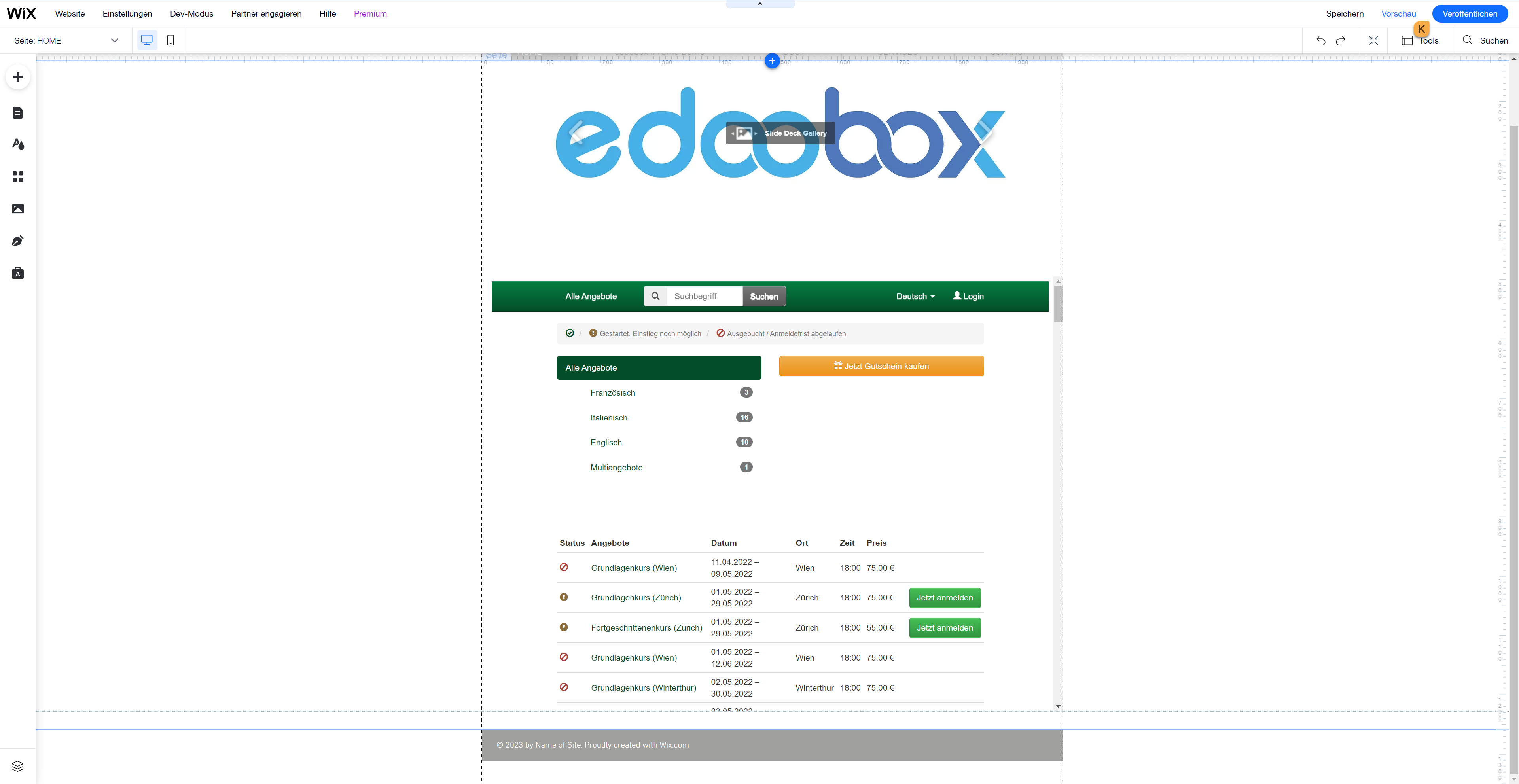 Das edoobox iFrame kann problemlos in eine Wix Website eingebunden werden.