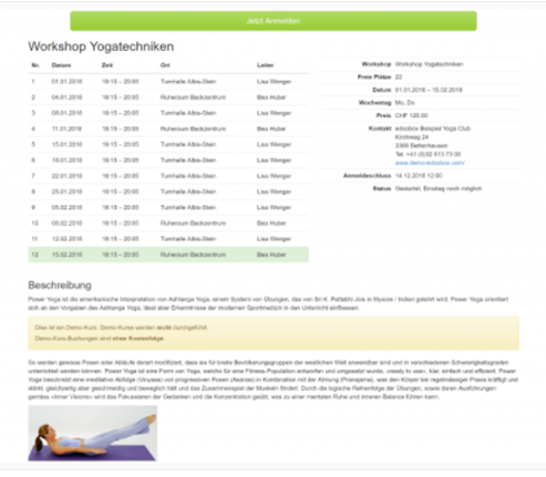 Sie können Ihren Besuchenden als Erstes die Angebotskategorien mit Bildern (Kachelansicht) präsentieren, sodass diese ausgewählt werden können und im Anschluss nur die spezifischen Angebote jener Kategorie angezeigt werden. Wir haben für Sie ein Beispiel mit einer Yogaseite erstellt.