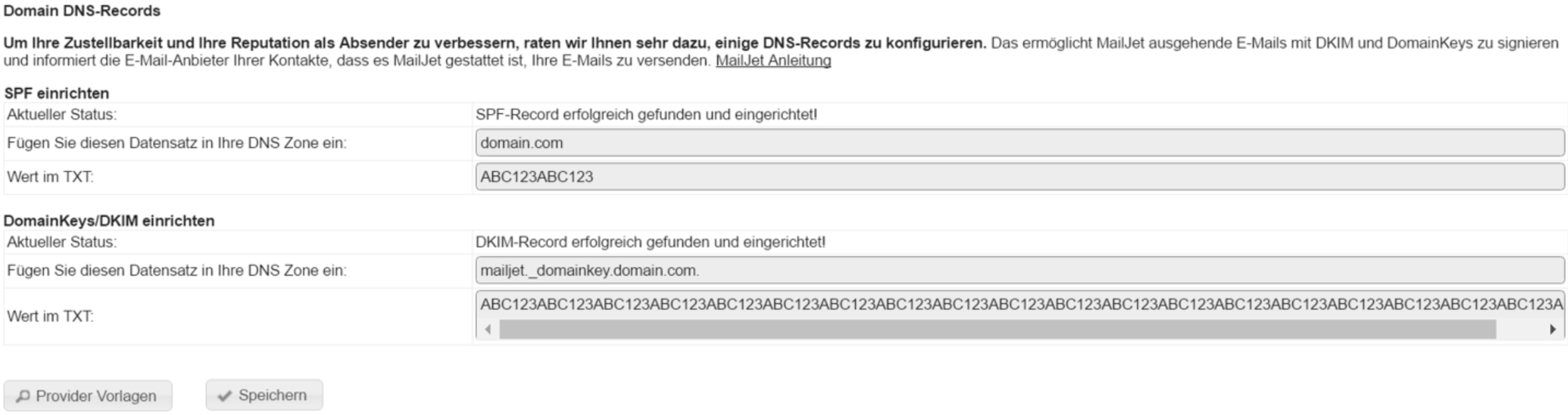 Um Ihre Zustellbarkeit und Ihre Reputation als Absender zu verbessern, raten wir Ihnen, einige DNS-Records zu konfigurieren. Das ermöglicht Mailjet, ausgehende E-Mails mit DKIM und DomainKeys zu signieren und informiert die E-Mail-Anbieter Ihrer Kontakte, dass es Mailjet gestattet ist, Ihre E-Mails zu versenden.