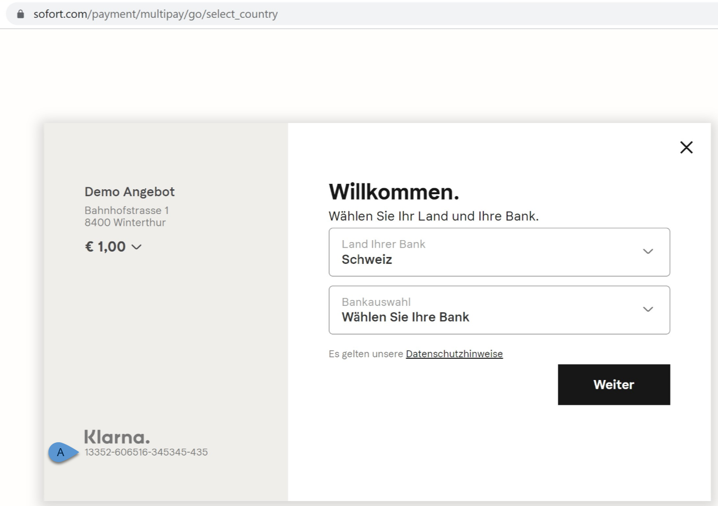 Sobald ein Kunde per Sofort bezahlen möchte, wird er auf eine Seite der Sofort GmbH geleitet.