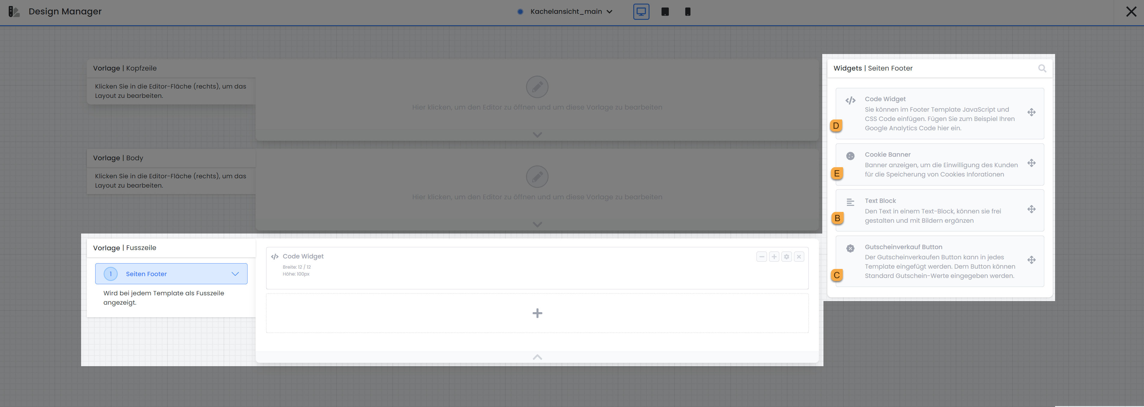 Verfügbare Widgets in der Vorlage Seiten Footer