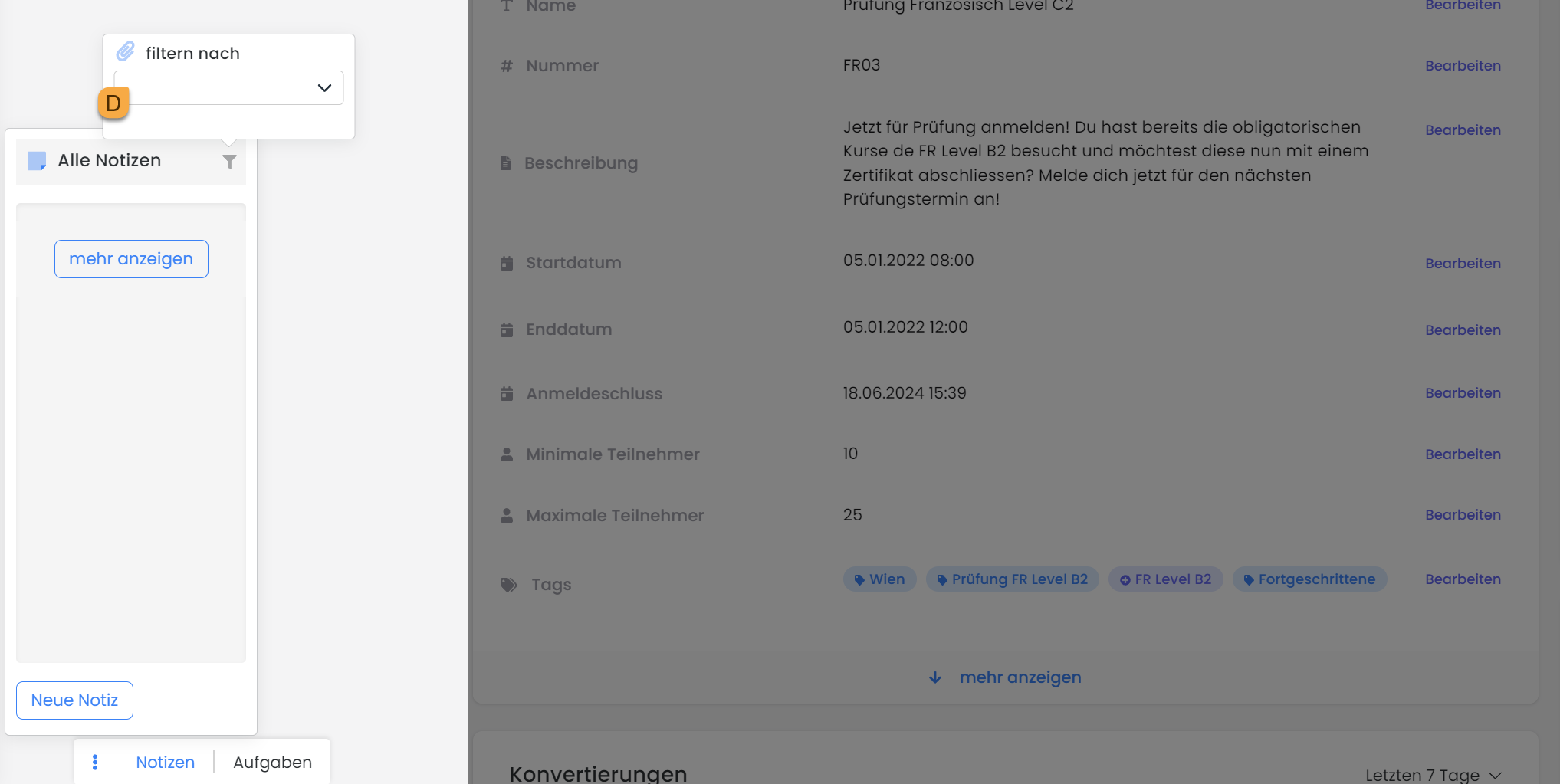 Arbeiten Sie mit den Notizen und werden nicht gleich fündig? Nutzen Sie hierfür die FilterfunktionD.