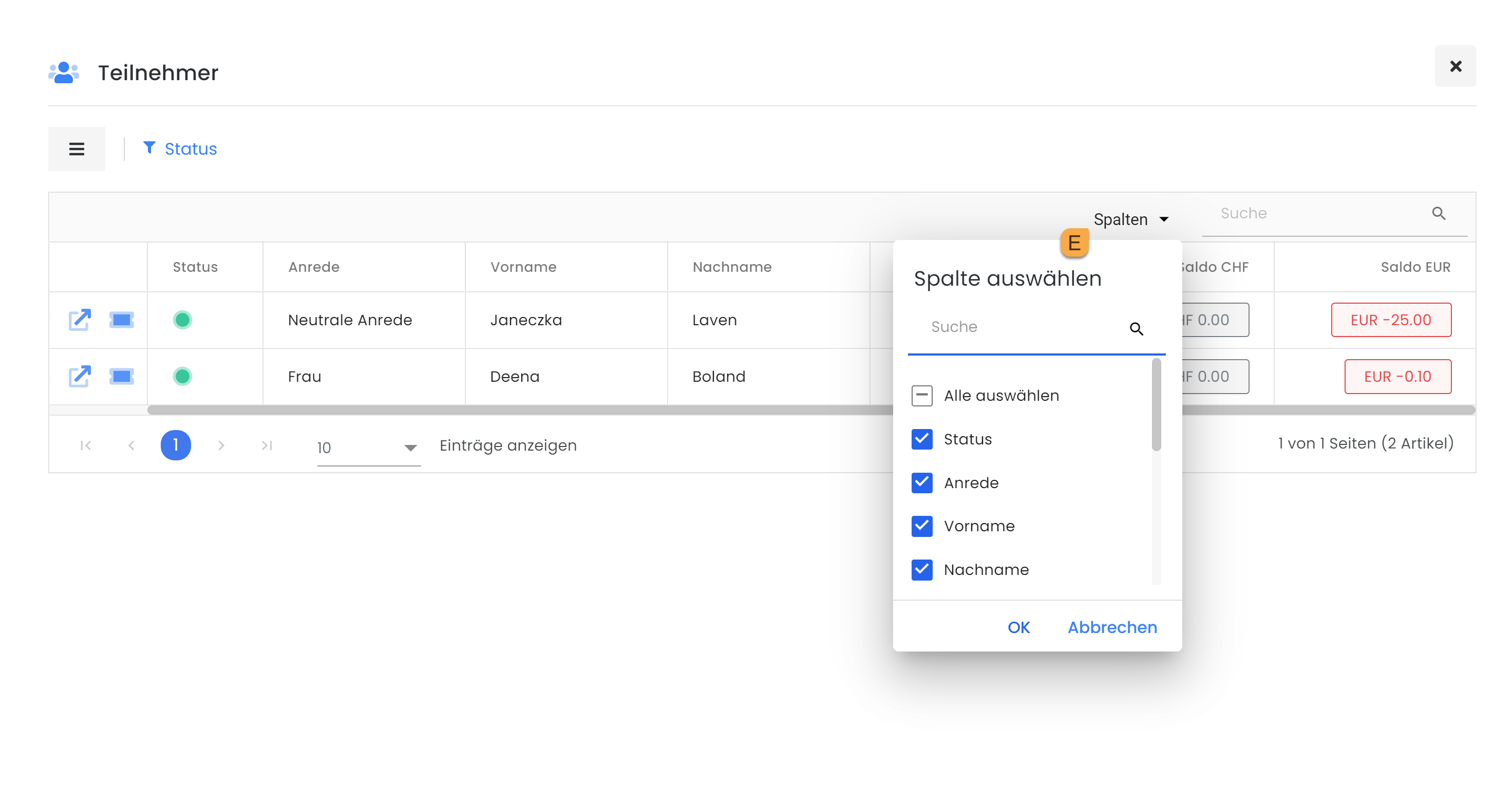 Möchten Sie eine eigene Liste generieren, welche nur diese Daten anzeigt, die Sie auch benötigen? So haben Sie die Möglichkeit in der entsprechenden Liste auf «Spalte»E zu klicken und die von Ihnen gewünschten Angaben mit einem Haken zu aktivieren.