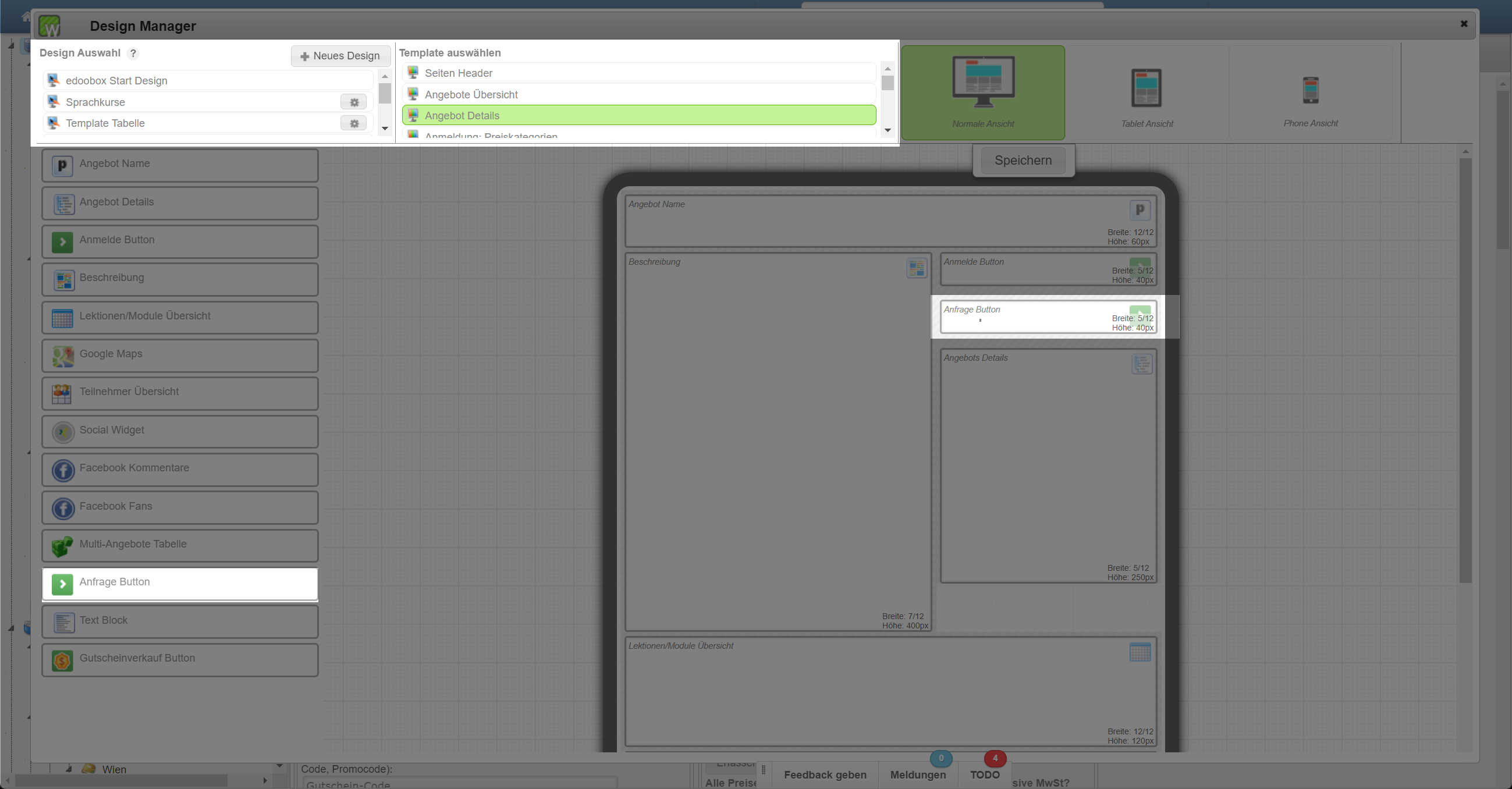 Insert the "Request button" widget from the widget overview into the template at the desired position.