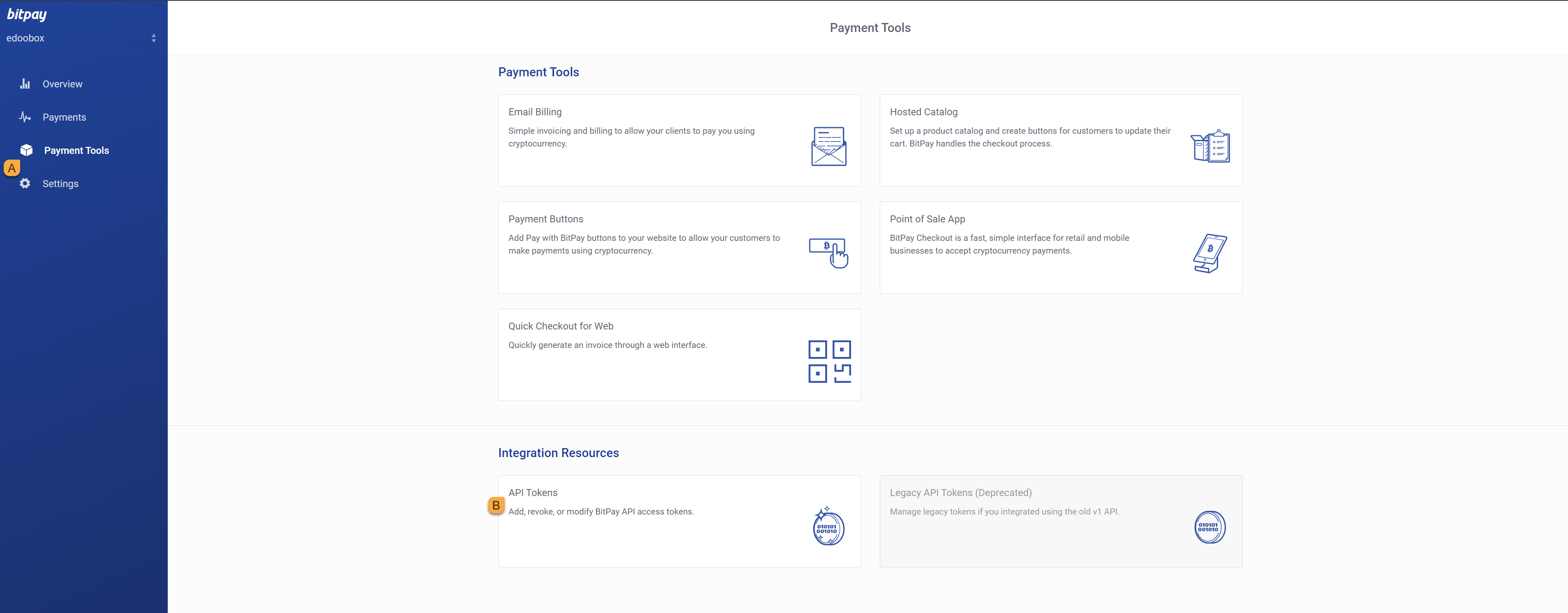 To integrate BitPay into edoobox, you need an active business account with BitPay. If you do not yet have an account, please visit the BitPay website and register for a business accounthttps://bitpay.com/dashboard/merchant/api-tokens.