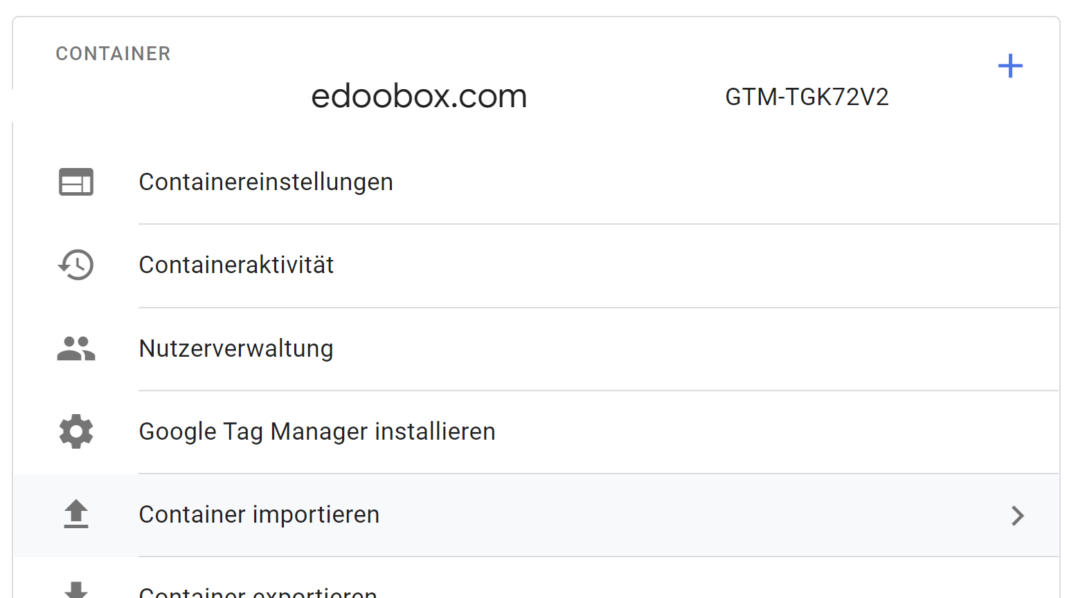 Import JSON container from edoobox into Google Tag Manager.