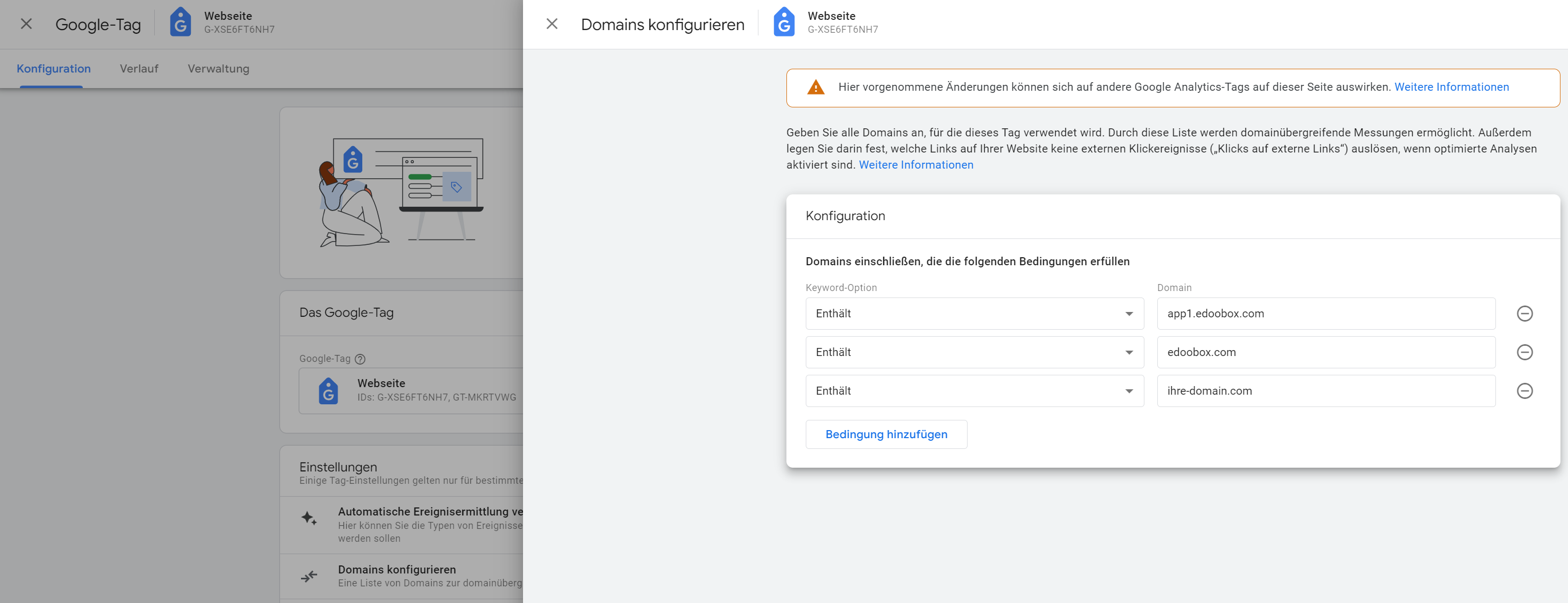 To ensure that tracking also accepts calls from the edoobox domain, these must be entered under "Edit tag settings" "Configure domains".