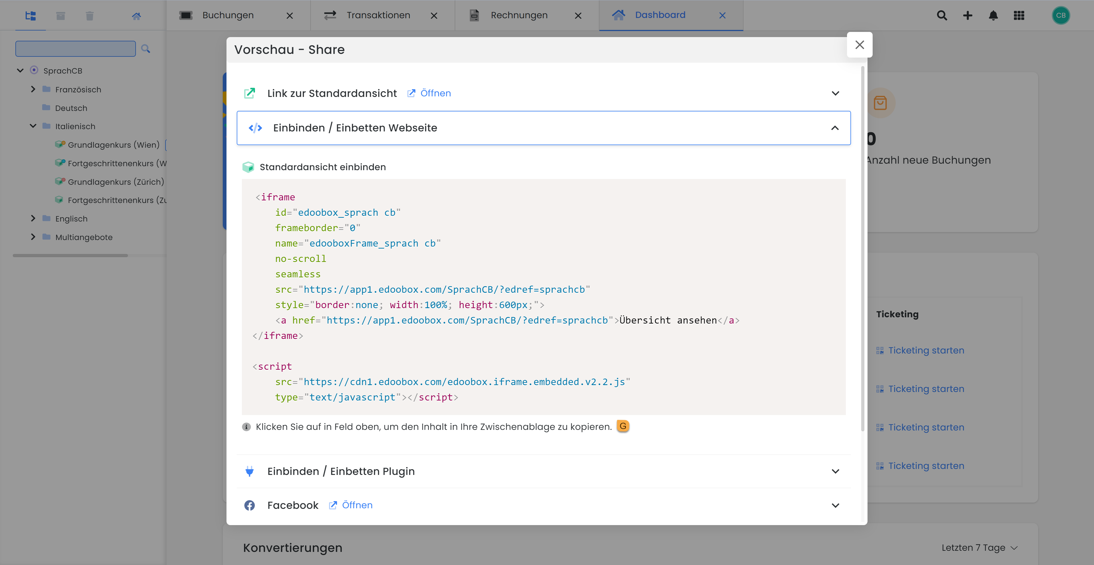 Click on "Include" and click on the iFrame codeG, this is then automatically placed on the clipboard.