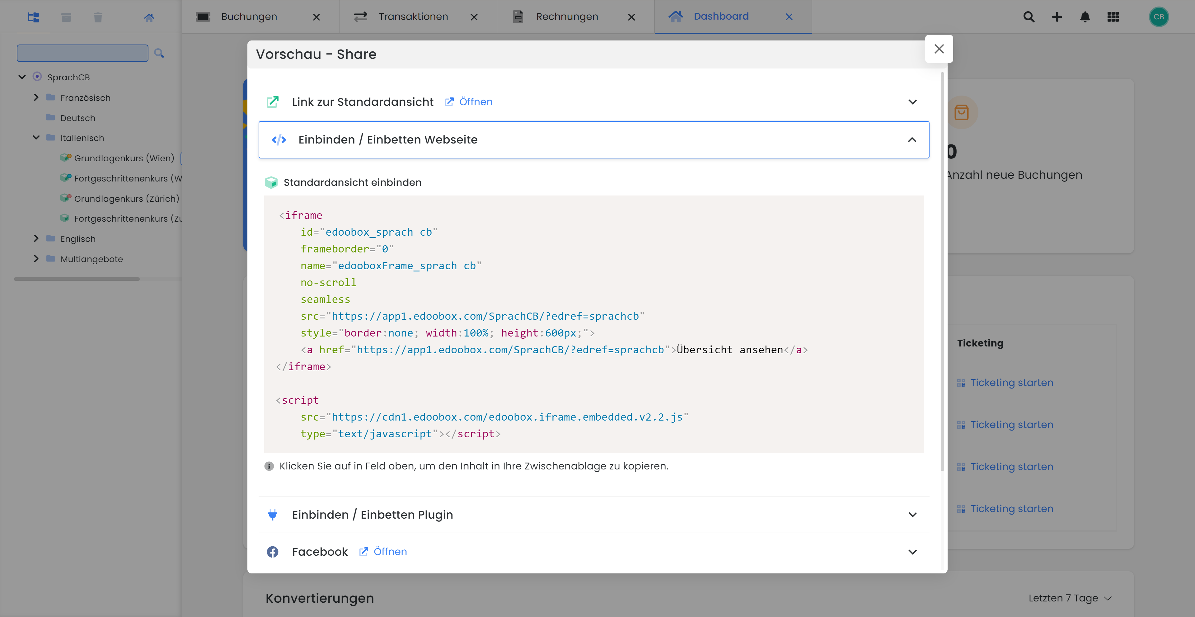 The edoobox iFrame can be easily integrated into a Typo3 website.