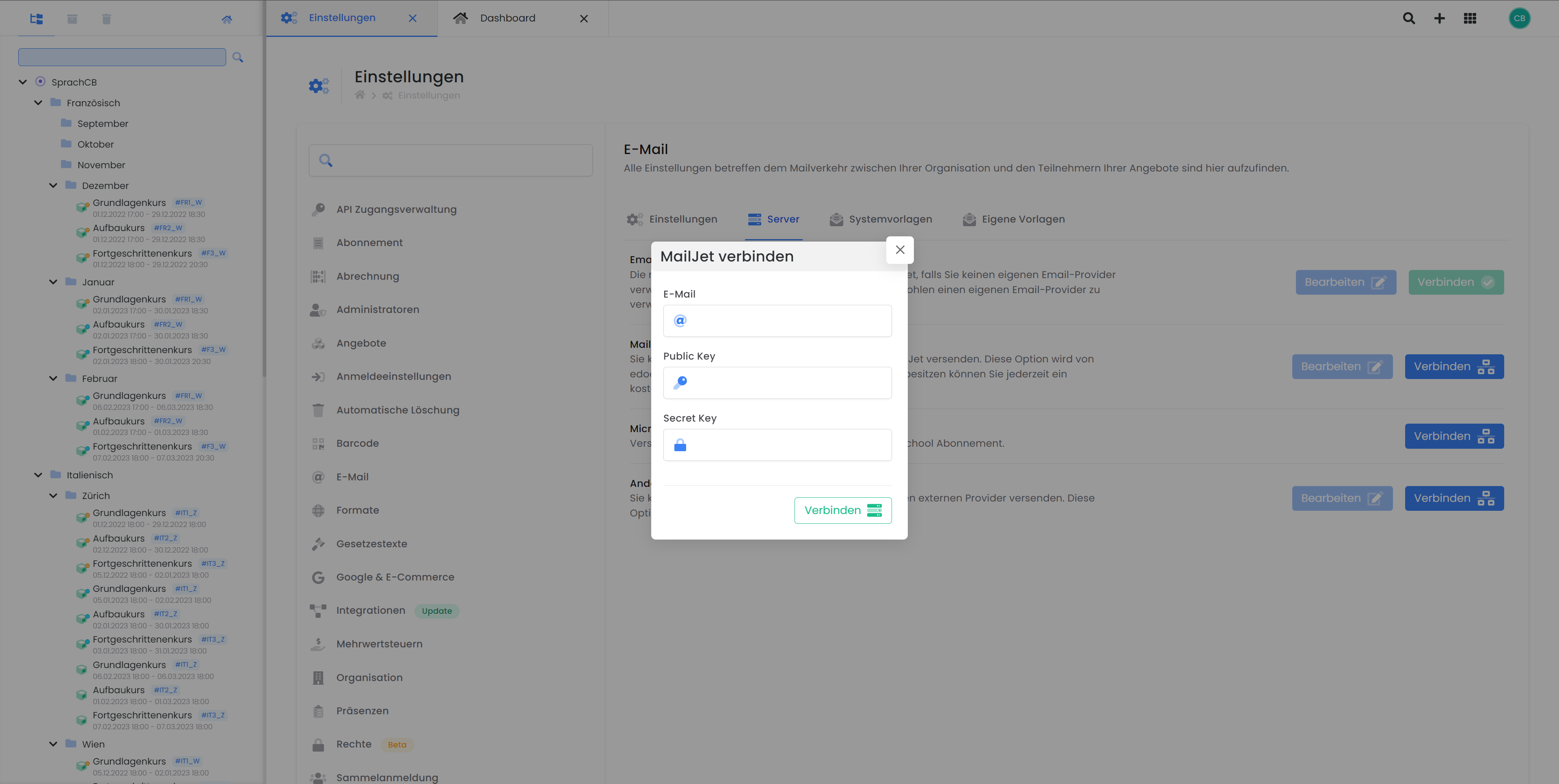 In edoobox, you can link Mailjet under "Settings" - "E-mail" in the "Server" tab in the MailJet (recommended) section.