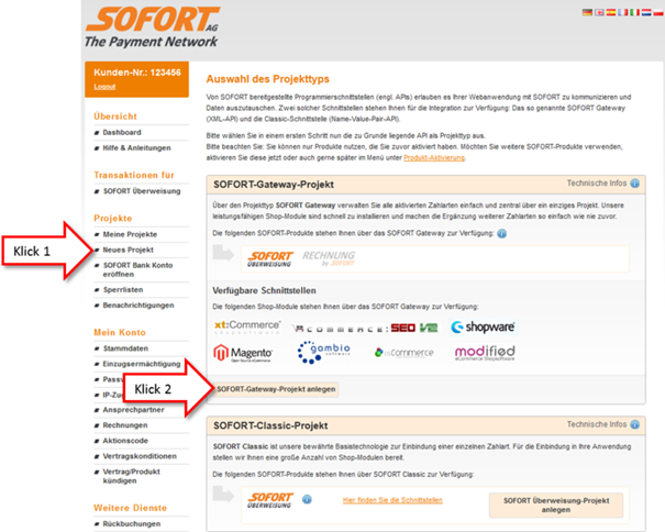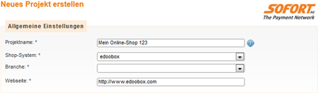 Wait until the project has been checked and approved by Sofort.com before adding it to edoobox!