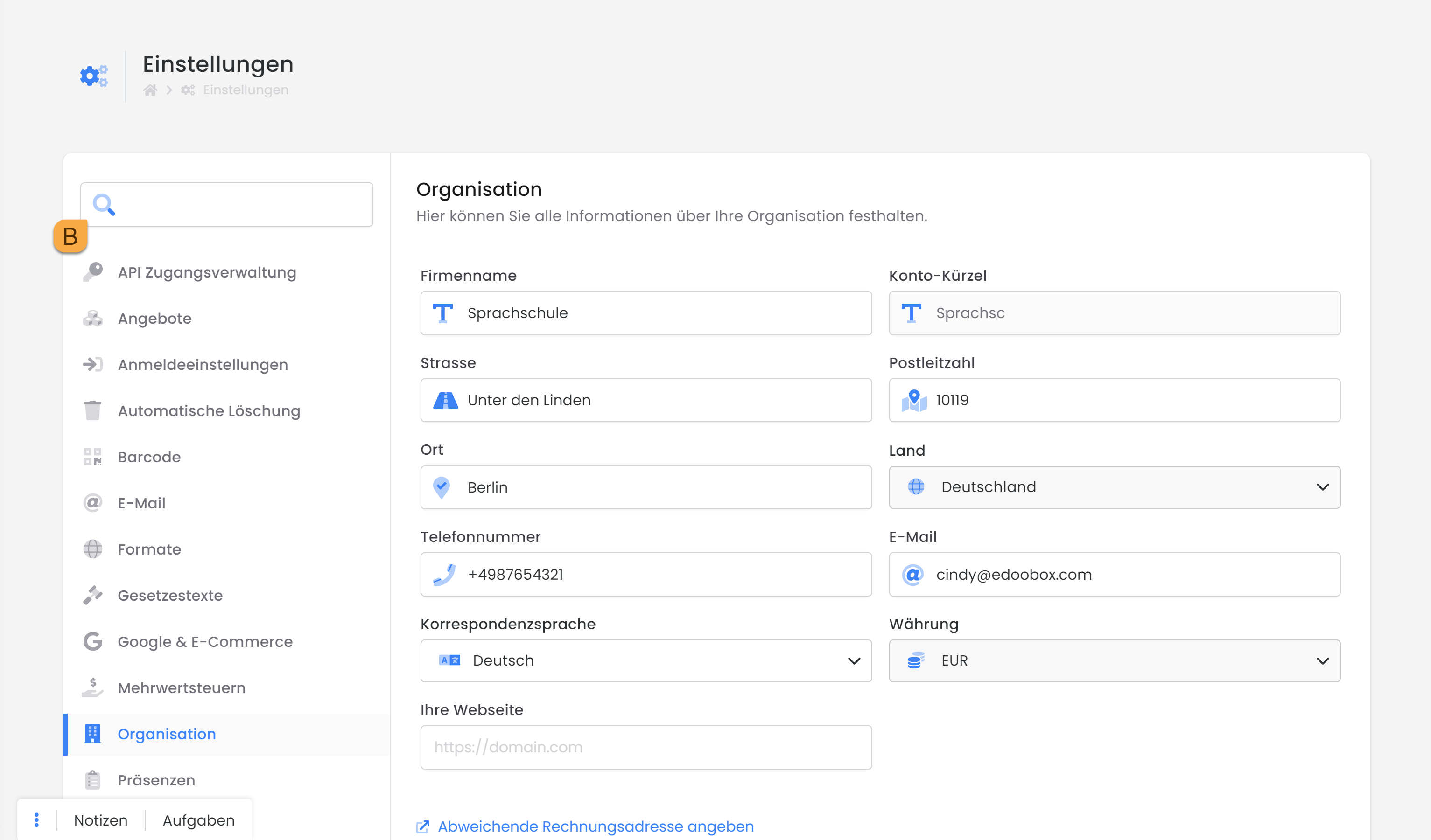 Mit der neu implementierten Suche im allgemeinen Postausgang A oder auch in den System-Einstellungen B werden Sie schnell fündig und können so noch effizienter arbeiten. Die gewohnten Suchfelder in den Angebotslisten oder auch den Teilnehmern sind weiterhin vorhanden. Ebenfalls neu dazugekommen ist das Suchfeld im Angebotsbaum C.